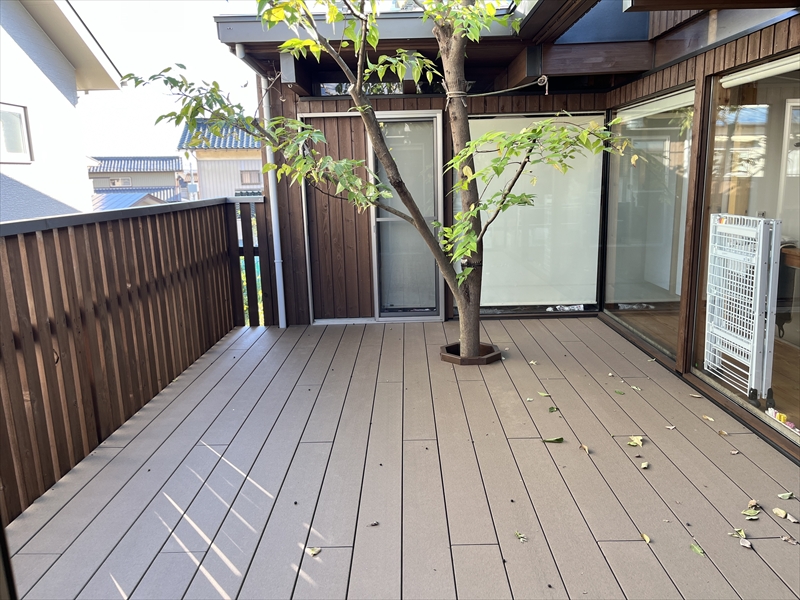 抜け落ちそうな2階ウッドデッキを雨風に強い木樹脂へリフォーム|市川市のI様邸