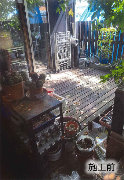 床板は一部抜けそうな状態だったため、お施主様も最近はウッドデッキに出ないようにしておられました。