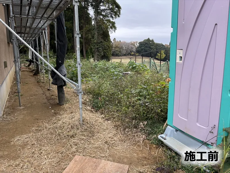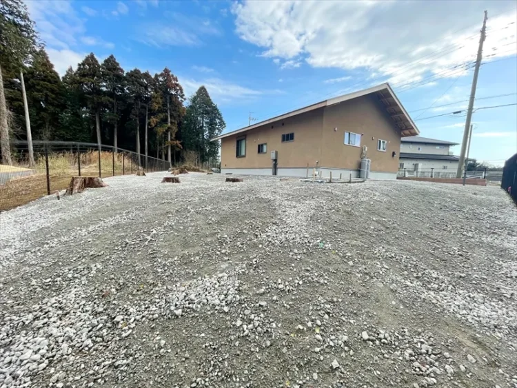 また、防草力を強めるために土を掘り起こし、除草剤を散布し、可能な限り根を除去とRC砕石をしっかり転圧し固めました。